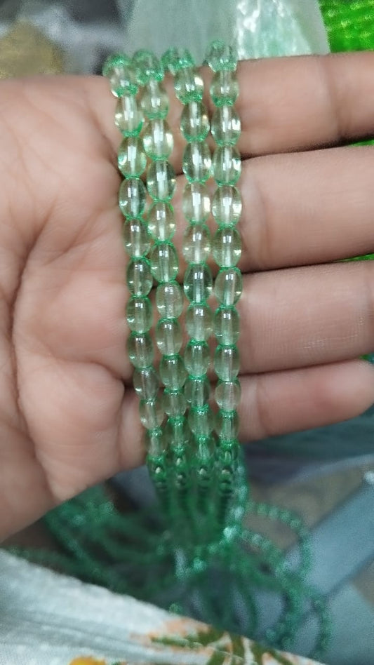 6*8mm Oval Shape Glass Beads Champagne Titanium Quartz Gemstone Round Loose Beads for Jewelry, Ariwork, Saree Tassels, Embroidery, Art and Craft (Pack of 1 String / 100 Beads )