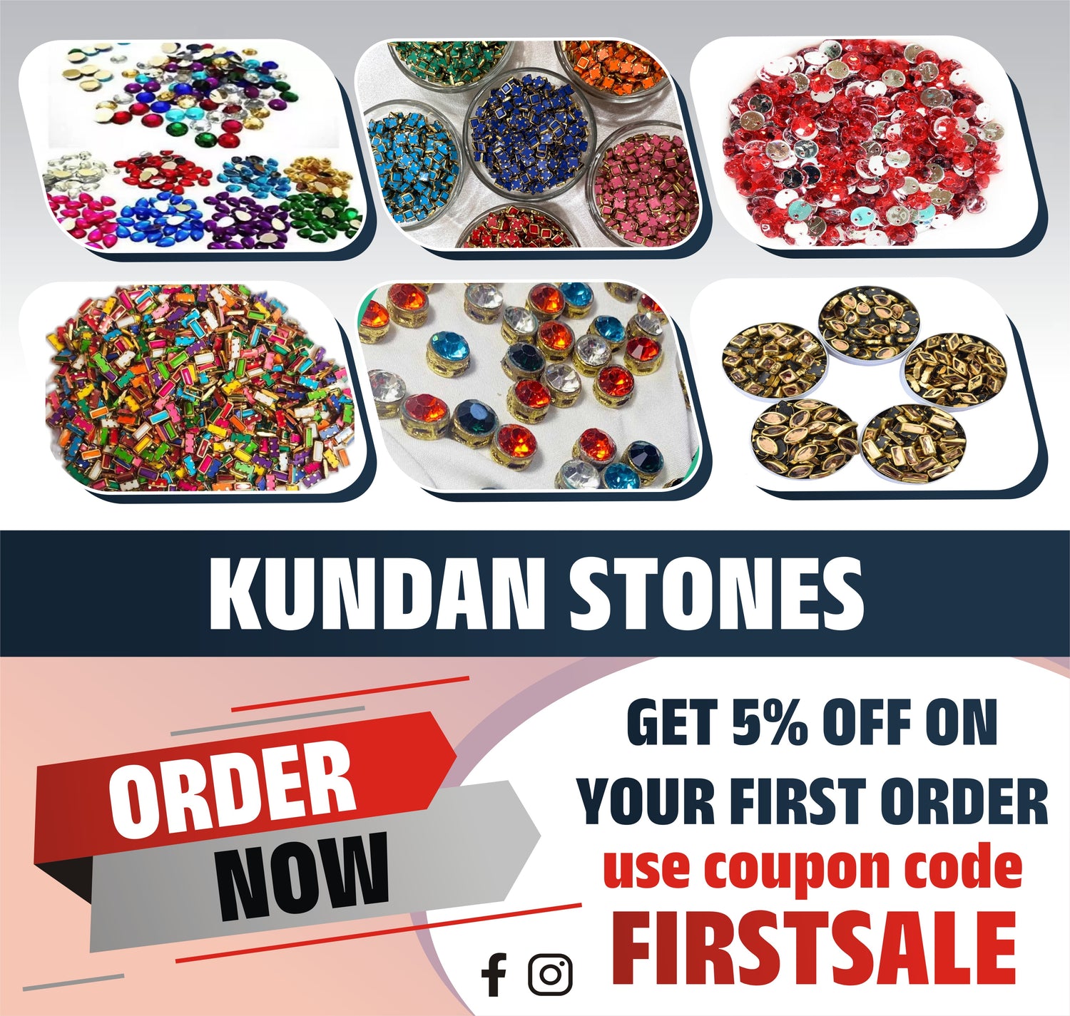 (DIY KIT NO.4 )Drop & Round Kundan Stone Kit For Embroidery, Saree work , Jewellery, craft ( 300 gram )