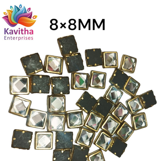 Glass Fitting Colour Kundan Stones for Embroidery, Craft and Jewellery Making (4 X 4 Squre Shape) 12 Colour Each 20 Gram
