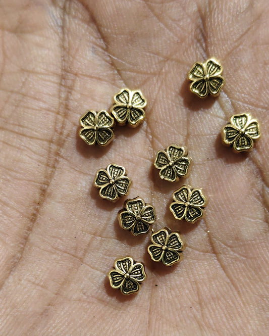 4mm Flower desing , Antique Metal Gold Beads, For Jewelry ,Bracelet ,Necklace , Saree Tassels Making Sold By 40 Gram (Approx 90 Beads )