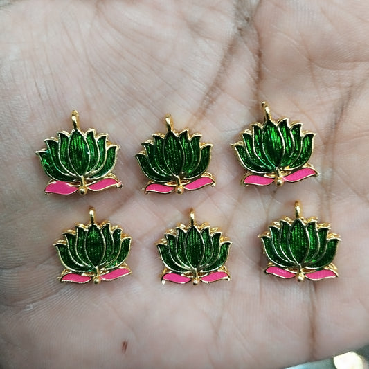 Lotus Shape Metal Charms Pendant for Jewelry & Craft, Saree Tassle| Multi-Color Enamel Lotus Design | Pack of 6 Pieces | Kavitha Enterprises