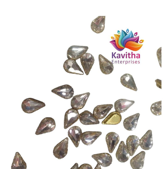 Gold Tilak/Drop Kundan Stones for Silk Thread Jewelry and Aari Embroidery - Various Sizes (4*6, 5*8) - Available in Packs of 20g, 50g, and 100g