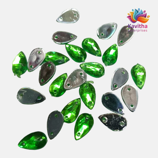 3x6mm Flat Kundan Stones, Green – Drop Shape, 20-Gram Pack for Craft, Jewelry, Bangles, and Embroidery Work