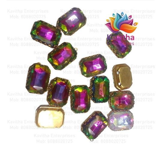 Jewellery Making Square Shape Crystal Stone/Kundan 8x10mm (1 Piece) Red , Green , Pink, Gold , Brown, Multi, etc ,
