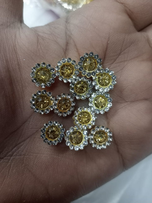Flower shape show button stones ( gold/white ) colour size 8mm ( pack of 25 pice ) ( pack of 50 pice )