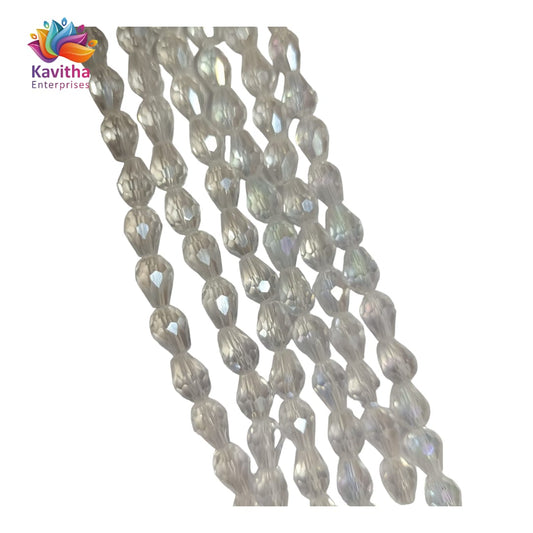 Transparent Drop/Briolette Crystal Bead String - 6*8 mm, 55 Beads for Jewellery Making, Beading, Embroidery, Art and Craft