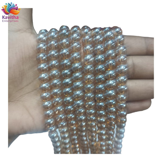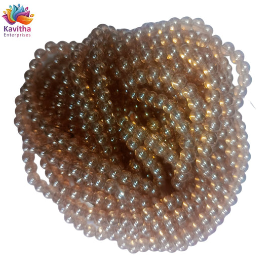 6mm Champagne Titanium Quartz Gemstone Round Loose Beads for Jewelry, Ariwork, Saree Tassels, Embroidery, Art and Craft (Pack of 1 String / Pack of 5 Strings)