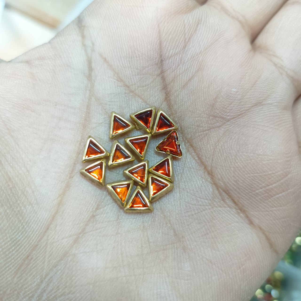 3x6mm Flat Kundan Stones orange colour – Triangle Shape, 20-Gram Pack for Craft, Jewelry, Bangles, and Embroidery Work