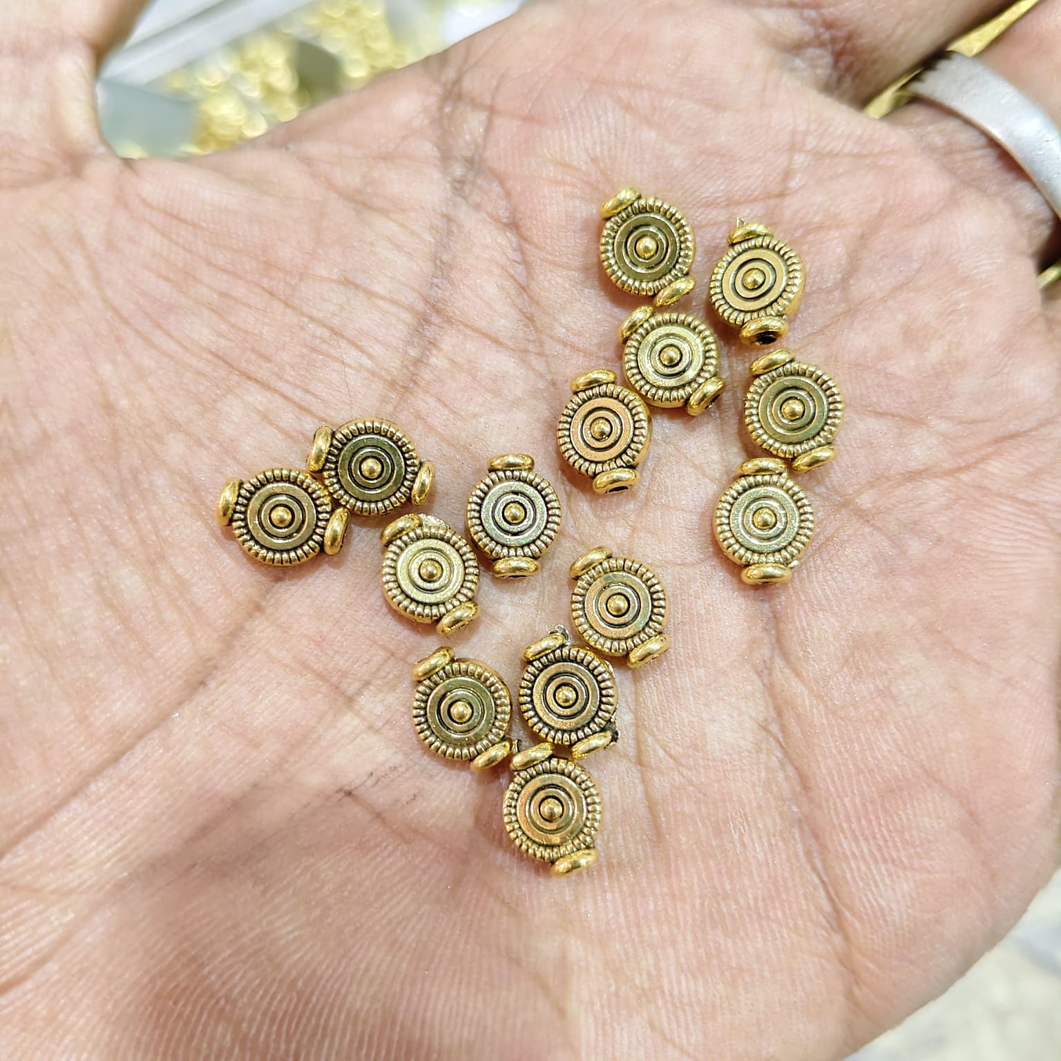 Antique Gold Designer Round Metal Beads for Jewellery Making & Saree Tassels – 40 Gram Pack (Approx. 64 Beads) | Kavitha Enterprises