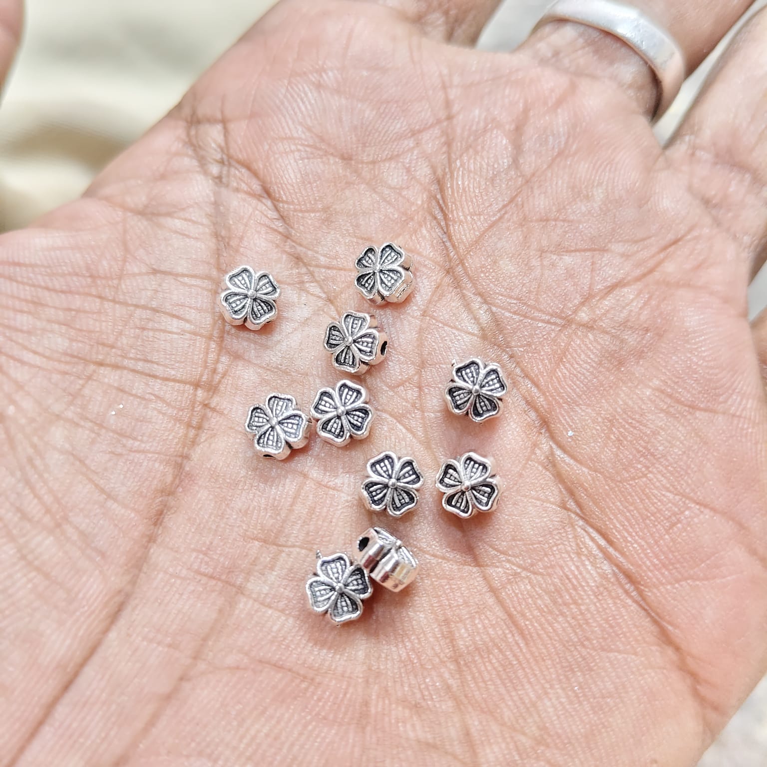 Antique Metal silver Beads flower shape, For Jewelry ,Bracelet ,Necklace , Saree Tassels Making Sold By 40 Gram (Approx 80 Beads )