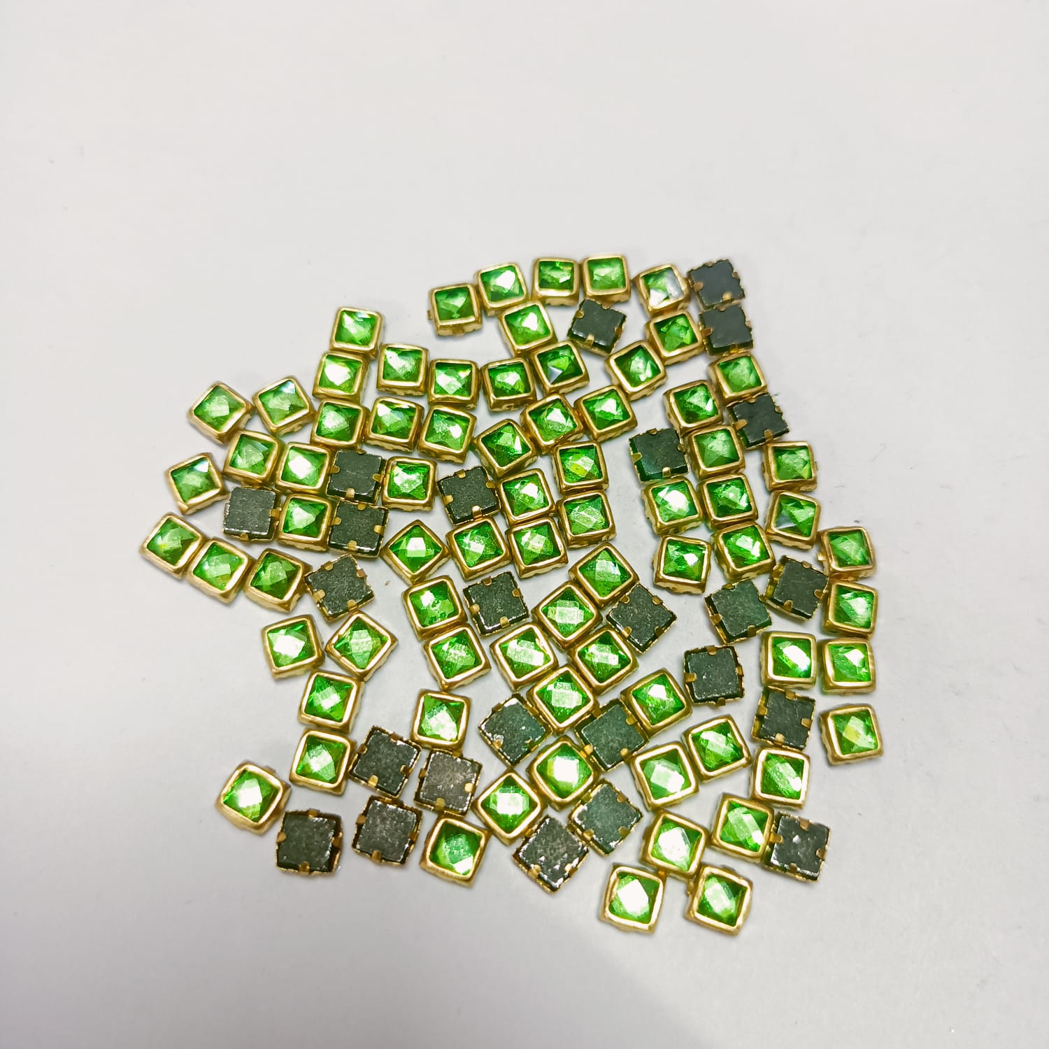 Enhance your creative projects with these stunning square-shaped Kundan stones, available in multiple quantities and vibrant colors to suit all your crafting needs.