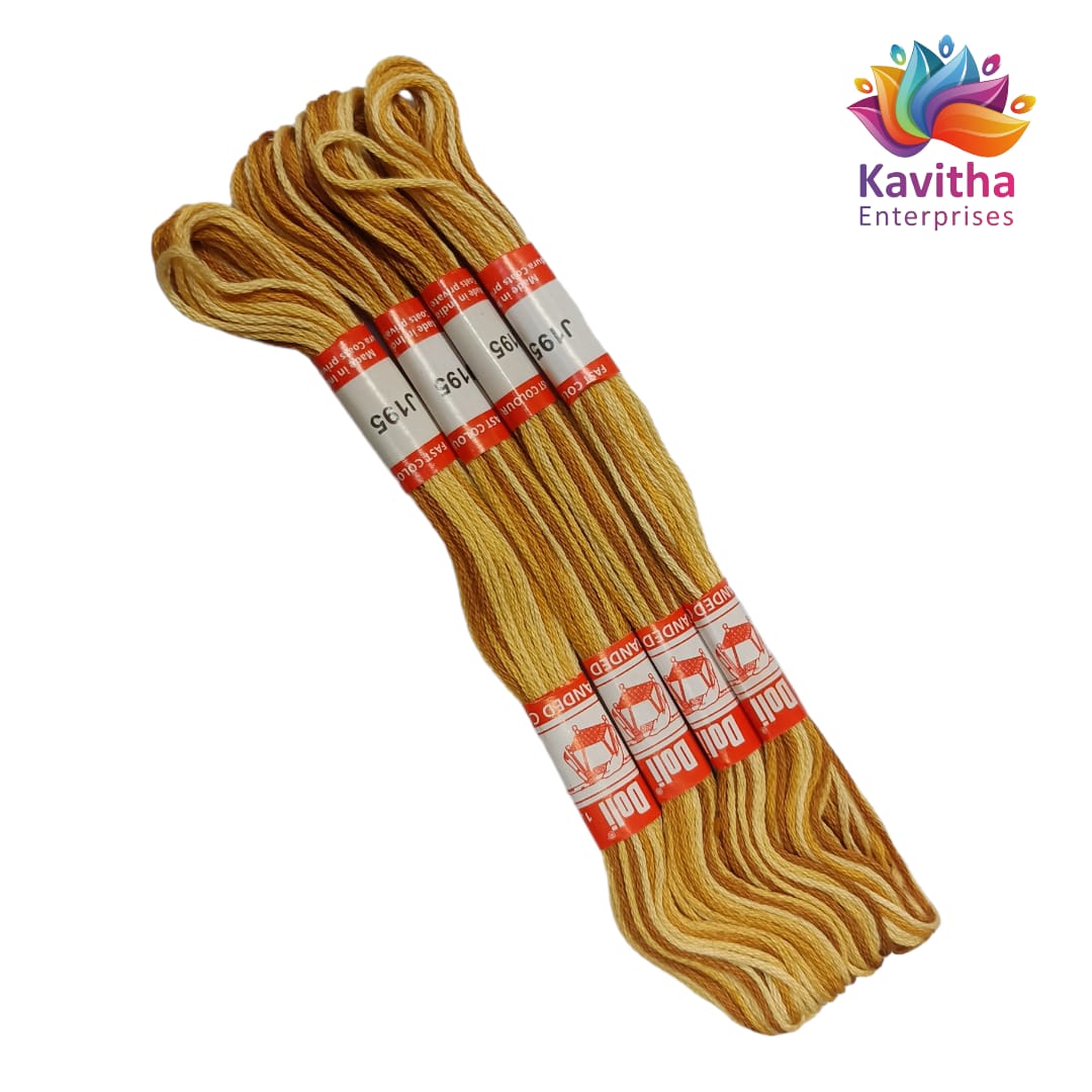 multi cream Colour Rangoli Cotton Embroidery Threads - Pack of 4 Skeins (1.2g Each) - 100% Mercerised Cotton shade no J195
