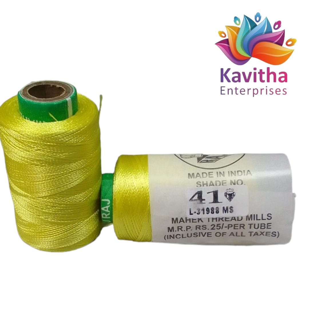 RAJ Company Silk Threads For Embroidery ,Saree tassels, craft - 1 Tube (800 meters, 20 Gram) Lemon Yellow Colour Shade No.41