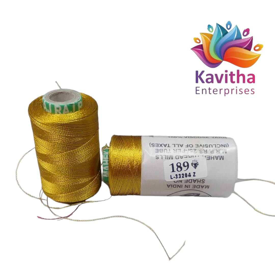 RAJ Company Silk Threads For Embroidery ,Saree tassels, craft - 1 Tube (800 meters, 20 Gram) Gold Colour Shade No.189