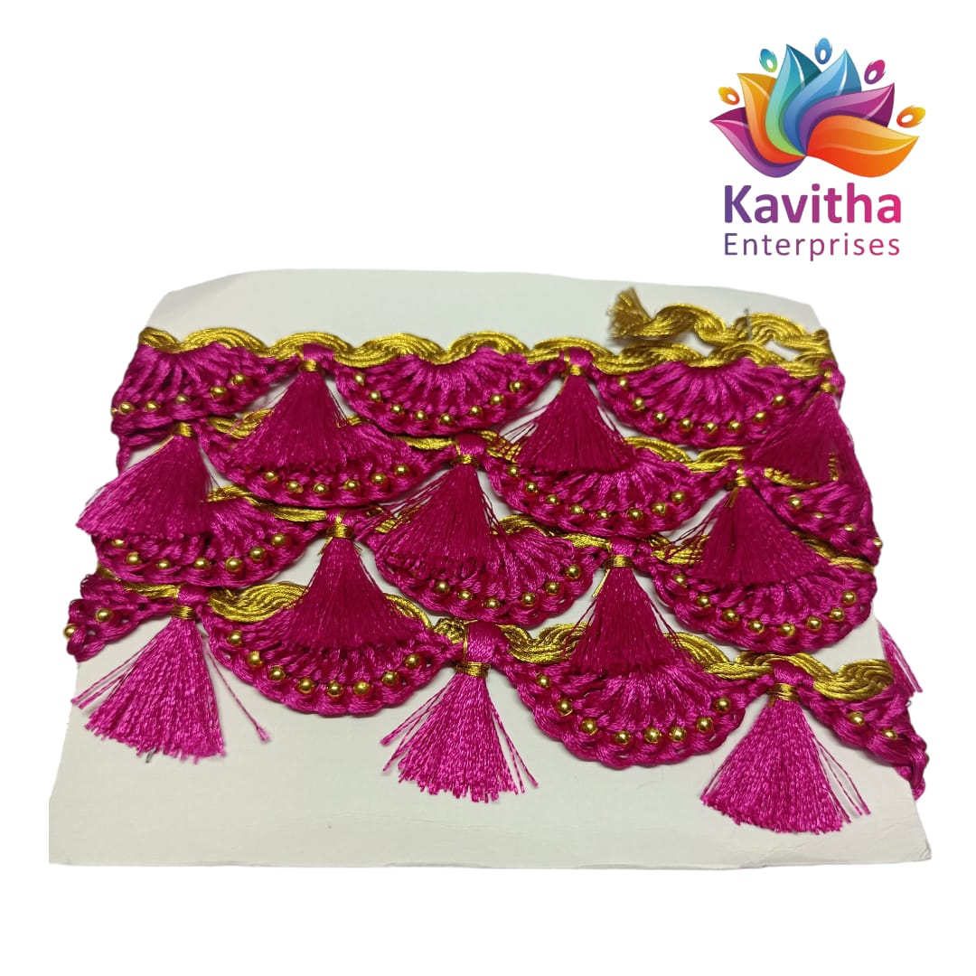 Enhance the elegance of your saree with our exquisite ready-made saree kuchu/tassels. Measuring 1.25 meters, these beautifully crafted border designs are perfect for adding a touch of traditional charm to your attire. Available in a stunning array of 20 vibrant colors, including red, green, pink, yellow, gold, purple, and more, these saree tassels are designed to complement any saree. Each piece is meticulously crafted to ensure the highest quality and durability. Ideal for special occasions, festivals, or everyday wear, our saree kuchu/tassels are the perfect addition to your ethnic wardrobe